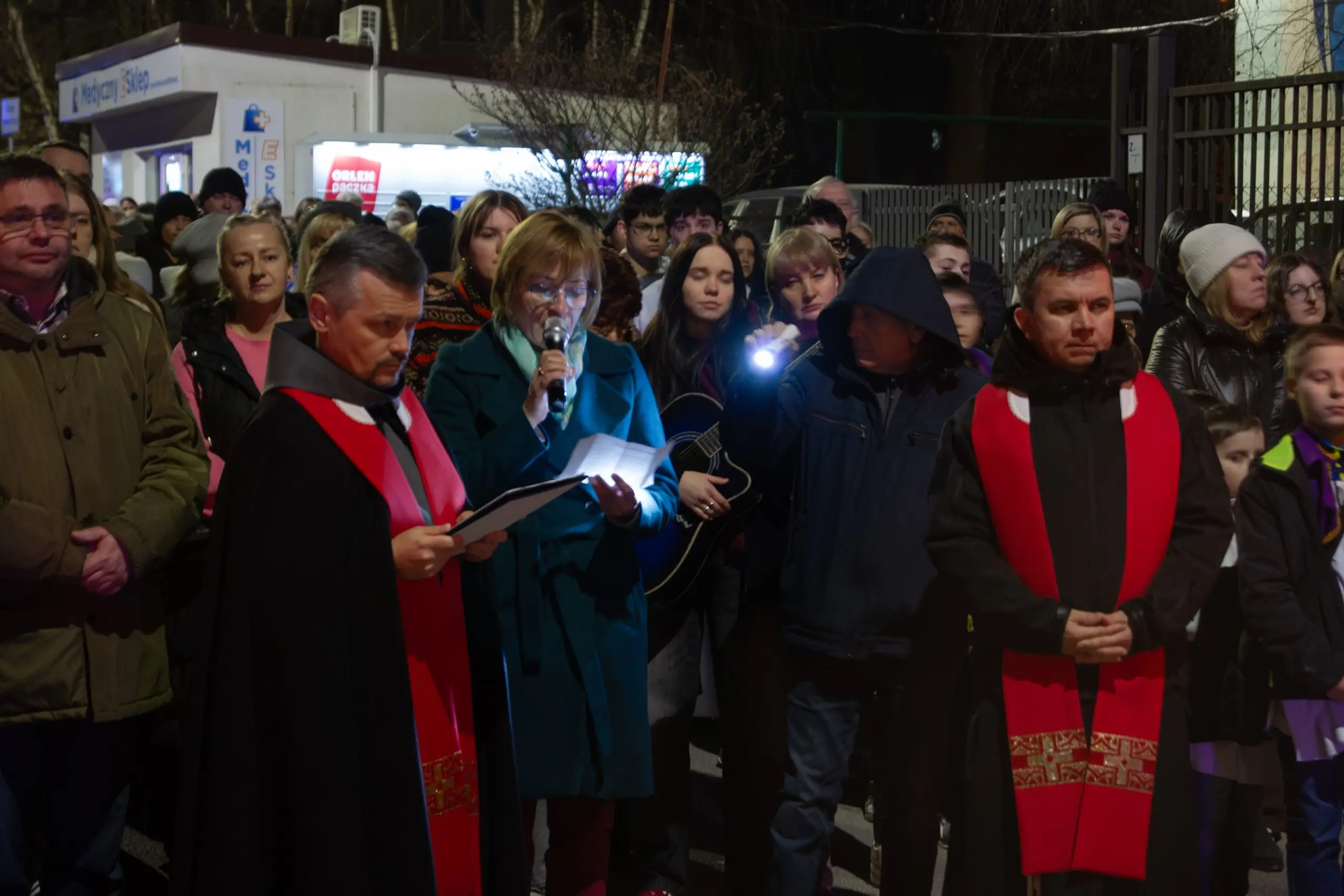 Rozważania poszczególnych stacji czytali przedstawiciele wspólnot działających przy naszej parafii, dzięki czemu nabożeństwo miało wyraźny wymiar wspólnotowy. Modlitwie towarzyszył śpiew prowadzony przez parafialną grupę muzyczną, pomagając wszystkim uczestnikom w głębszym przeżyciu tej drogi.